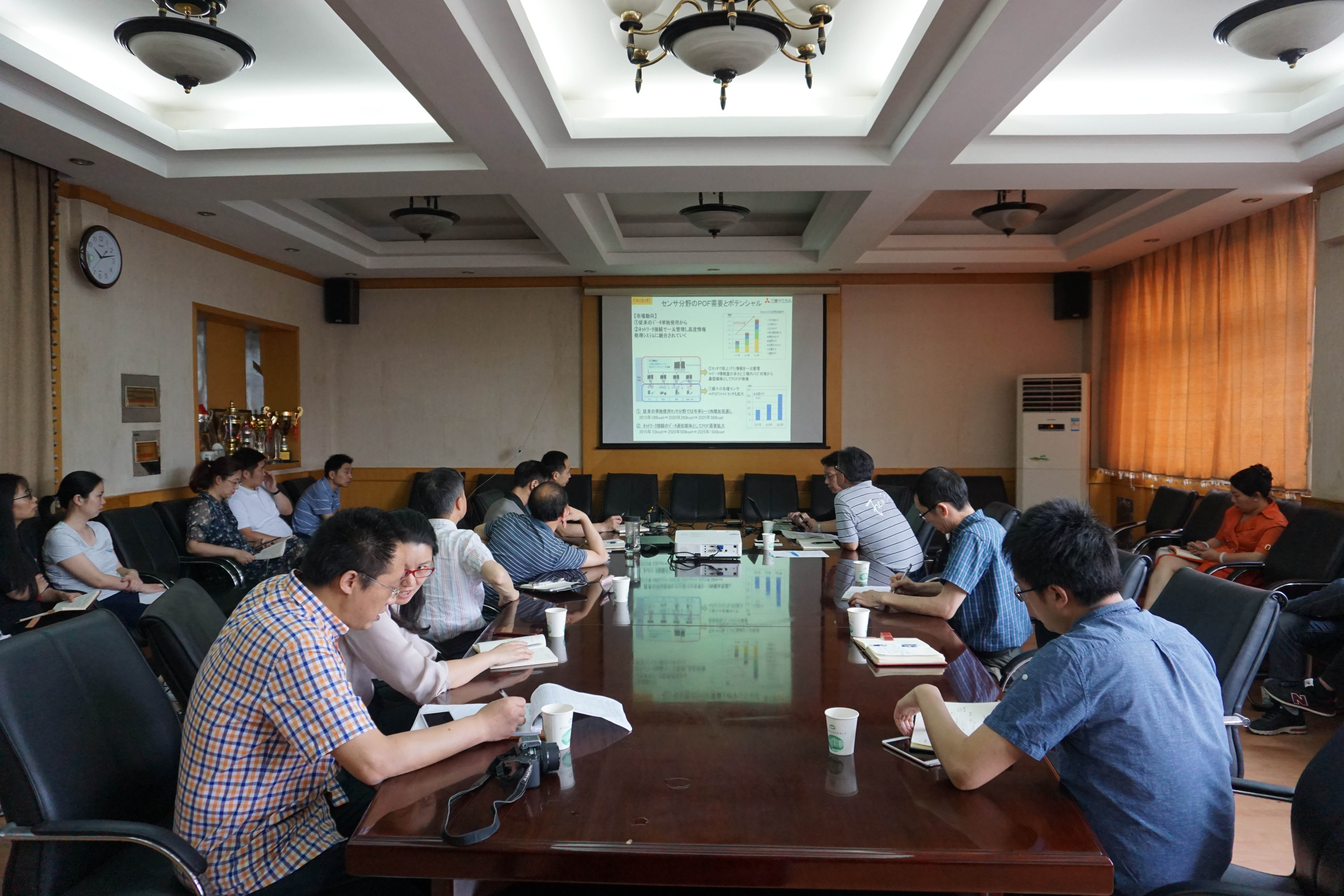 應公司的邀請,6月20日,日本三菱化學光纖事業部井尻雅文部長來到公司,作了題為“塑料光纖的現狀、應用及發展”的專題報告。基于塑料光纖價廉、柔性好、易于加工、質輕、抗電磁干擾等優點,在汽車MOST150總線系統、FA工業控制、CNC、電力控制、各類傳感器、特種照明等領域取得廣泛應用。隨著塑料光纖性能的進一步提高,在不久的將來,塑料光纖也會在車載以太網、智能機器人、風力發電、民航飛機及各類飛行器等領域的應用發揮重要的作用。