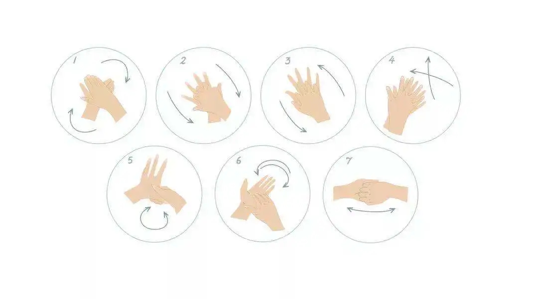02保持手部衛生。接觸公共環境或公共用品后,用肥皂或洗手液,采用七步洗手法搓洗,流水沖凈。如沒有洗手設施,可使用含有70%至80%的酒精搓手液(免洗洗手液)潔凈雙手。
