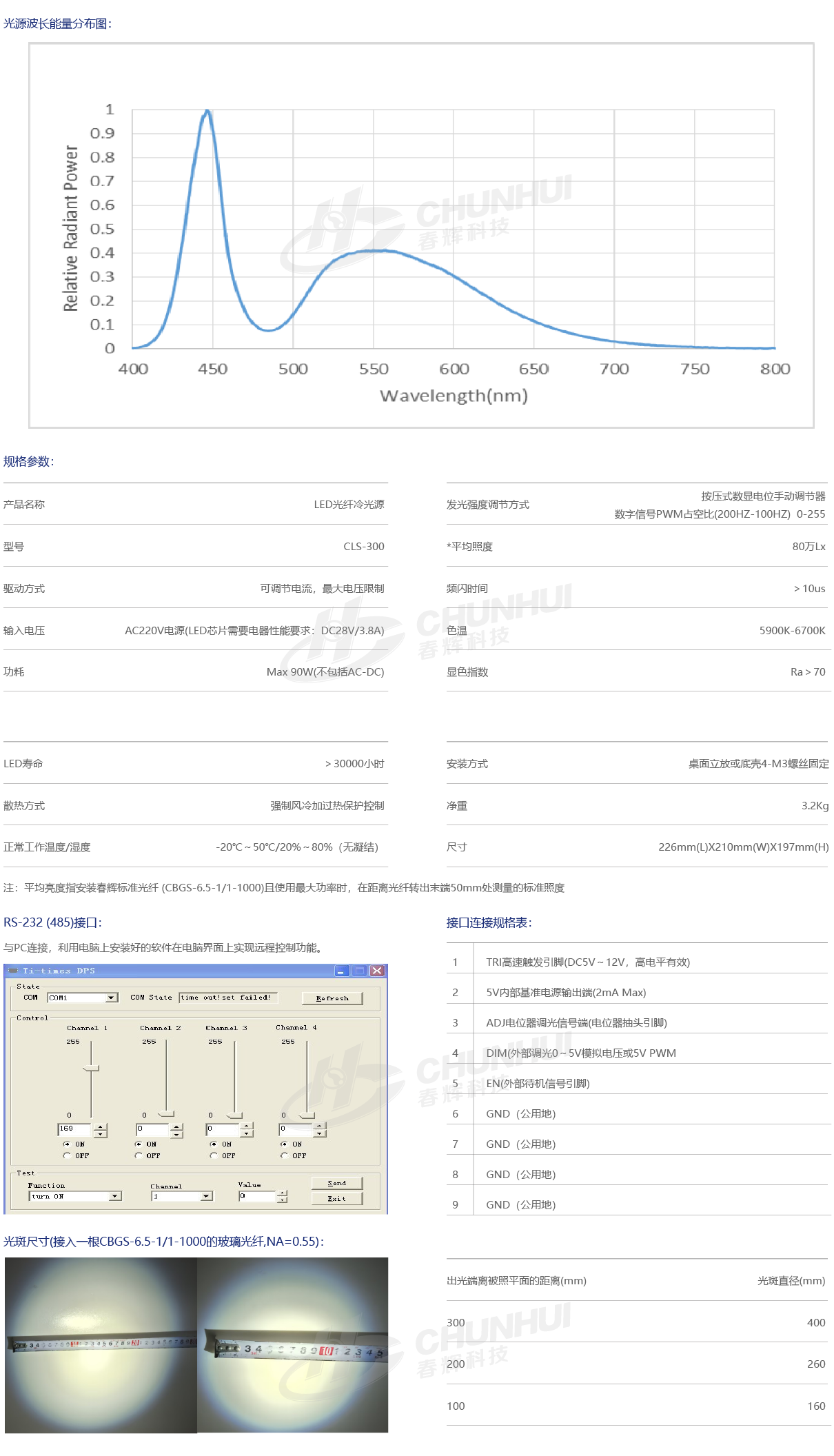 采用超大功率LED芯片,是一款高亮度的LED冷光源,實現(xiàn)超過300W金鹵燈光源的光輸出;支持快速觸發(fā)功能,響應時間5us,顯色指數(shù)70 / 90可選;重量輕,功率高,色溫高,顯色性好,能效高,性能穩(wěn)定,噪聲小,壽命長,外型美觀、精巧,便于安裝,手動調(diào)節(jié)或?qū)嵭?/span>RS-232(D89)接口遠程控制,可聯(lián)機實現(xiàn)同步控制,可提供多種光纖輸出接口;廣泛用于醫(yī)療,光學,工業(yè),科研等領(lǐng)域。