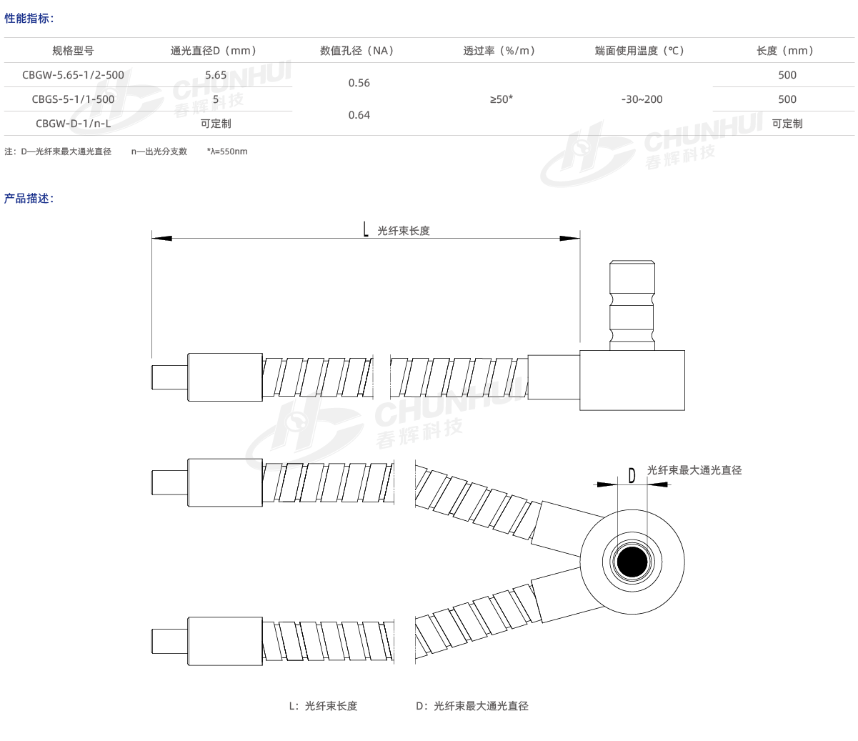 多種芯徑、數值孔徑可供選擇;